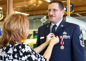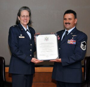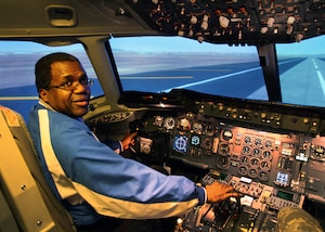 349th Civil Engineer Squadron firefighters, explain the different types of fire extinguishers to a group of Airmen at Fire Station #2, Jan. 8. The 349th CES offers the training nearly every month for Reservists. Senior Airman Mark Nylander, 349th Civil Engineer Squadron firefighter, quizzes Airmen